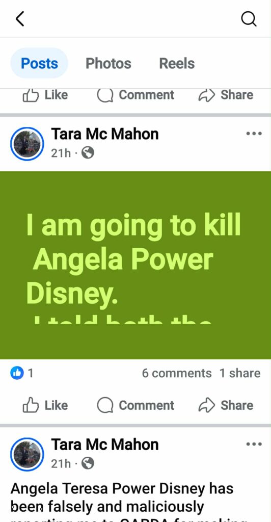 There is a particularly shocking status by Tara on social media saying I AM GOING TO KILL ANGELA POWER DISNEY.